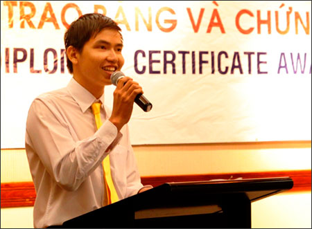 Vừa nhận giải thưởng danh dự World Silver Medallion với số điểm cao nhất ở môn Tính toán thương mại cấp cao của chương trình LCCI 2010 (Hiệp hội Thương mại và công nghiệp London, Anh), Bí thư Đoàn khoa Kế toán – kiểm toán (ĐH Văn Lang) Nguyễn Sỹ Hà còn sớm “chạm” đến ước mơ của mình khi có cơ hội thử việc tại một trong bốn công ty kiểm toán lớn nhất thế giới. (Nguyễn Sỹ Hà trong ngày nhận giải thưởng World Silver Medallion).