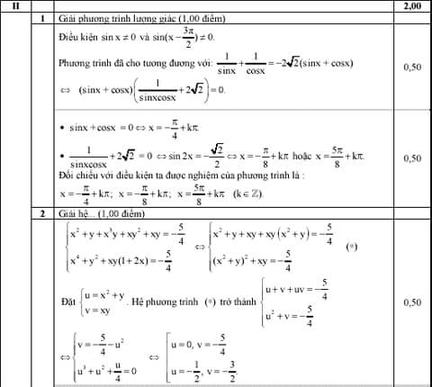 ĐÁP ÁN – THANG ĐIỂM ĐỀ THI TUYỂN SINH ĐẠI HỌC, CAO ĐẲNG NĂM 2008