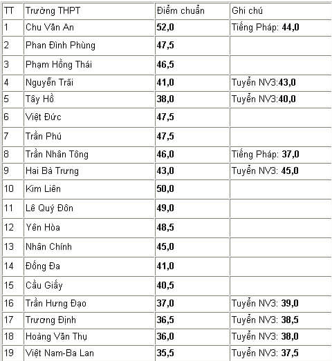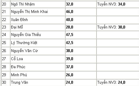 Các trườngTHPT: Tây Hồ, Trần Hưng Đạo, Trương Định, Hoàng Văn Thụ, Việt Nam – Ba Lan, Ngô Thì Nhậm, Đại Mỗ tuyển học sinh có nguyện vọng 3 thuộc tất cả các khu vực tuyển sinh.