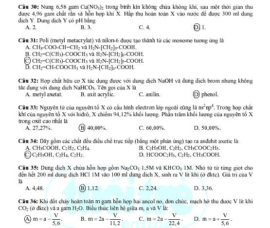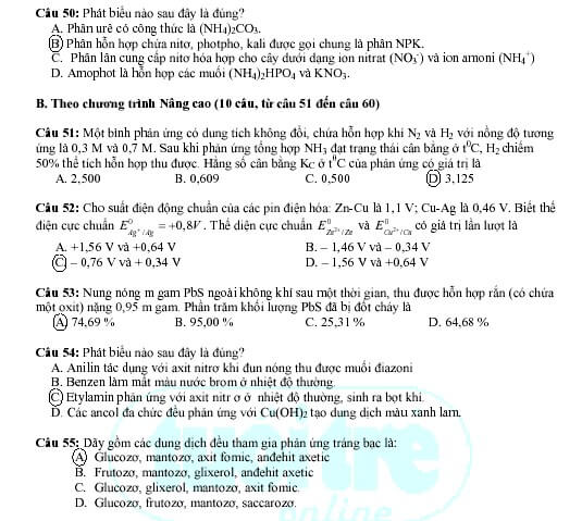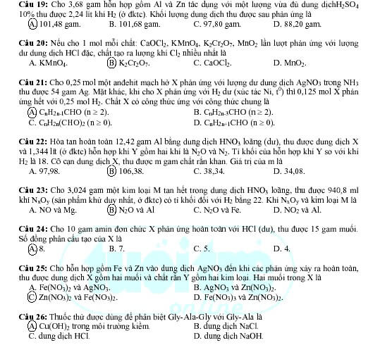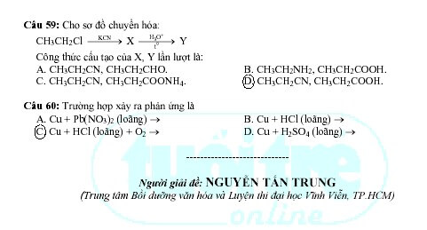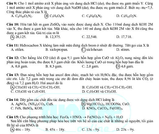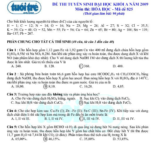 Gợi ý giải đề thi tuyển sinh khối A năm 2009 – Môn Hóa (khóa ngày 5-7-2009)