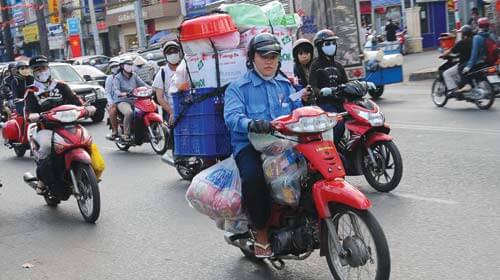 Đang thiu thiu giấc ngủ trưa trên chiếc Future Neo Trung Quốc cũ mèm, nghe chuông điện thoại reo là ông Phạm Đình Lợi bật dậy, nhìn vào màn hình với nụ cười rạng rỡ: “Có cơm ăn rồi!”. “Cơm” ở đây là một mối chở hàng quen. Cả buổi sáng ngồi hết ngáp dài lại ngó nghiêng chẳng có ai đoái hoài, khi nghe gọi chở hàng ông lật đật gạt chân chống, đạp máy phành phạch rồi lao vút về phía trước.