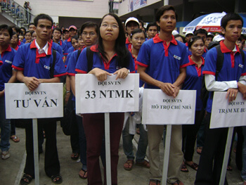 Ngoài ra, các tình nguyện viên còn chia thành các đội hình nhỏ túc trực tại các mặt trận như: Bến xe Miền Đông, Miền Tây, An Sương, Ngã Tư Ga, Chợ Lớn, Ga Sài Gòn, Trạm 2… để tiếp thi sinh và phụ huynh ngay từ khi vừa đến TP, hướng dẫn thí sinh về nhà trọ, địa điểm thi…